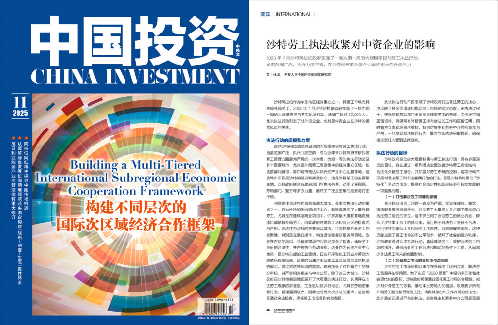 沙特阿拉伯作为中东地区经济重心之一,其劳工市场尤其依赖外籍劳工。2025年7月沙特阿拉伯政府实施了一场为期一周的大规模移民与劳工执法行动,逮捕了超过22,000人。此次执法行动引发了对外资企业,尤其是中资企业在沙特的运营风险的关注。