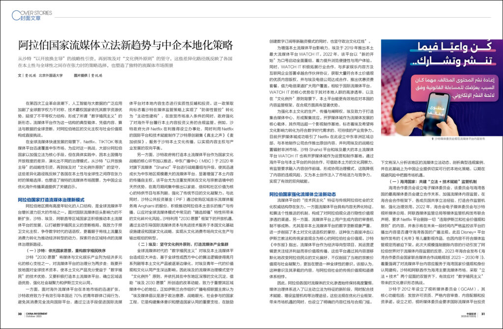 在全球流媒体快速发展的背景下,Netflix、TIKTOK等流媒体平台迅速覆盖中东市场,为应对这一挑战,大部分阿拉伯国家以加强立法为核心手段。但在具体实践中,因本土国情与开放程度的差异,演化出不同的治理模式。从沙特“以开放换主导”的战略性引资,再到埃及对“文化例外原则”的坚守,这些差异化路径既反映了各国在本土性与全球性之间存在张力时的策略选择,也塑造了独特的流媒体市场图景,为中国企业优化海外传播渠道提供了关键启示。
