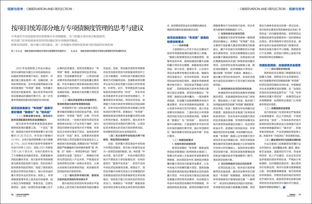 您做在的位置: 中国投资 > 按项目统筹部分地方专项债额度管理的思考与建议