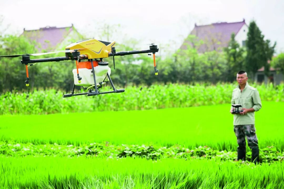⬆2019年8月4日,农业植保人员在江苏南通如皋市白蒲镇稻田操作植保无人机喷洒农药。(CFP)
