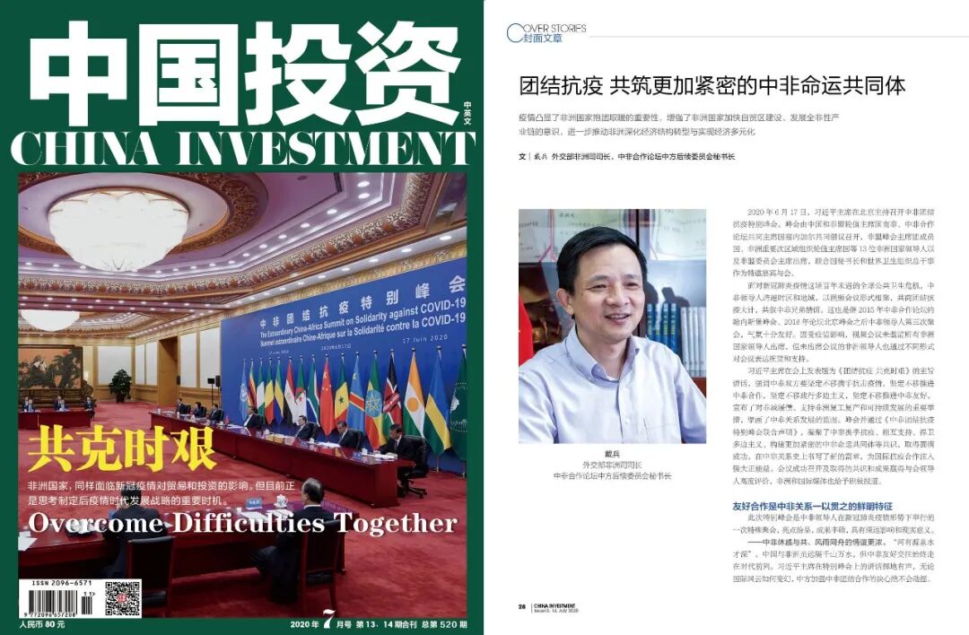 红雨随心翻作浪,青山着意化为桥。中非团结抗疫特别峰会在疫情“至暗时刻”点亮了希望,为中非友好合作注入了新动能。我们坚信,在习近平主席和非方领导人的亲自关心和战略引领下,在26亿中非人民的共同努力下,中非双方必将携手战胜疫情,铸就更加紧密的中非命运共同体。