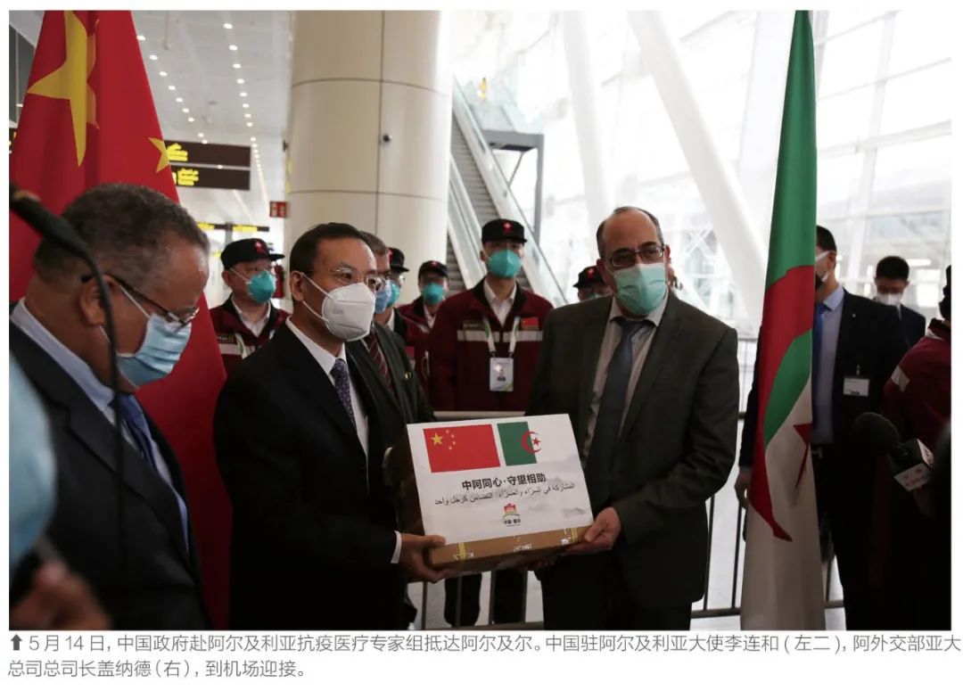 5月14日,中国派遣医疗专家组抵达阿尔及利亚,并在阿协助当地抗疫数周,是阿中双方本着命运共同体精神团结抗疫的体现。