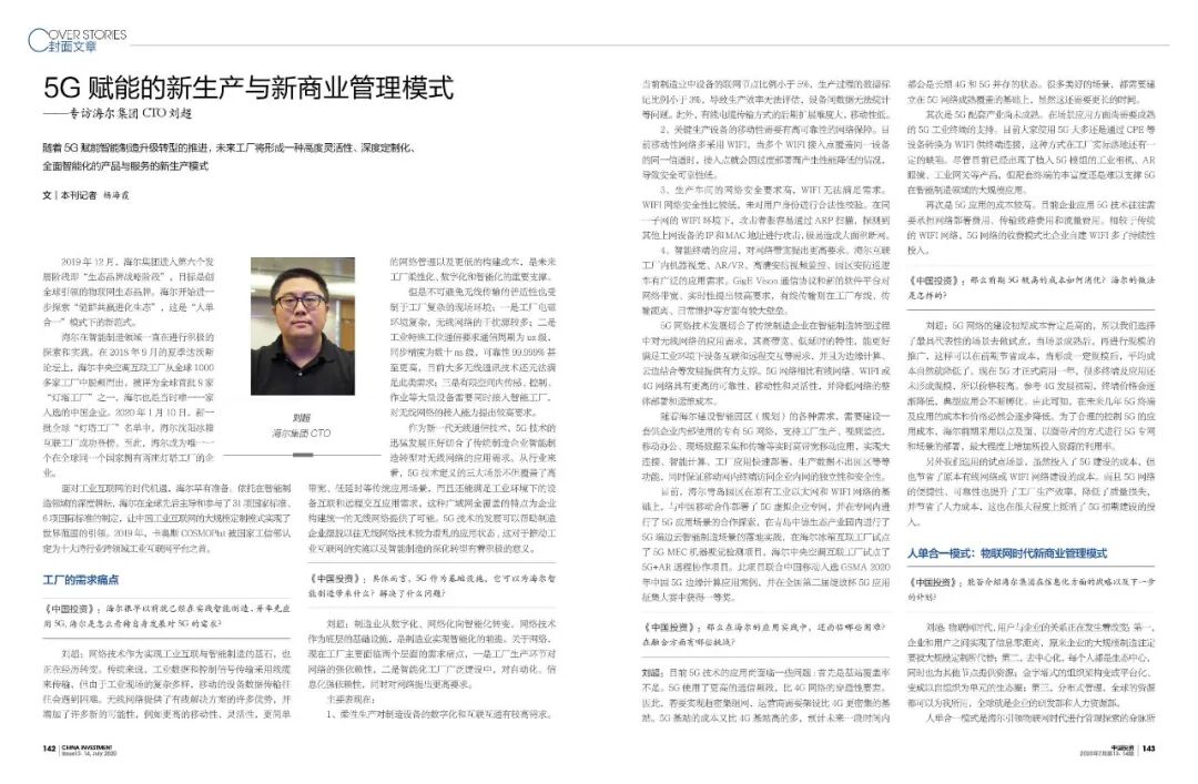 《中国投资》:海尔很早以前就已经在实践智能制造,并率先应用5G,海尔是怎么看待自身发展对5G的需求?