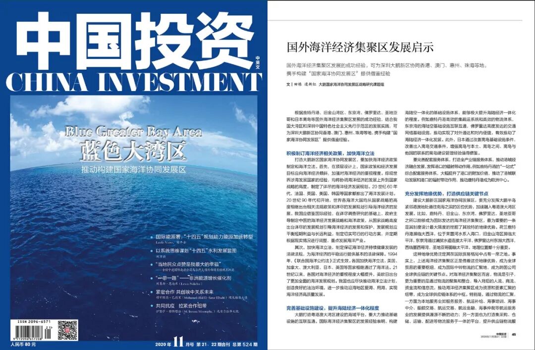 根据鹿特丹港、旧金山湾区、东京湾、佛罗里达、圣地亚哥和日本离岛等国外海洋经济集聚区发展的成功经验,结合我国大湾区和深圳中国特色社会主义先行示范区的发展实践,可为深圳大鹏新区协同香港、澳门、惠州、珠海等地,携手构建“国家海洋协同发展区”提供借鉴经验。