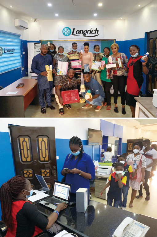 ⬆ 上:当地顾客展示购买的隆力奇产品。下:当地顾客选购隆力奇产品