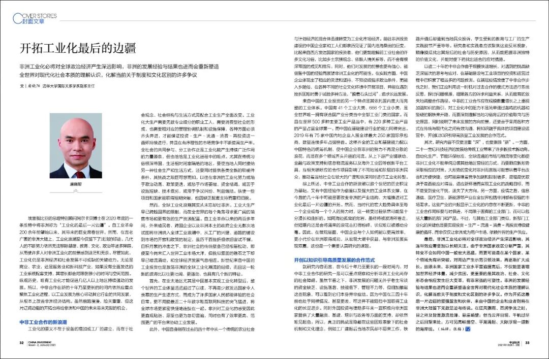 埃塞俄比亚的总理特别顾问阿尔卡贝博士在2020年底的一条推特中将非洲称为“工业化的最后一片边疆”。自工业革命200余年前肇始以来,其带来的巨变席卷世界。然而,在古老广袤的非洲大陆上,工业化浪潮至今仅留下了浅浅的印迹。几代人的不断努力依然无法移除基建、教育、文化、政治等诸多障碍,从而使许多人对非洲工业化的前景感到迷茫和无奈。尽管如此,工业化仍是非洲经济和社会发展不可或缺的关键动力。无论是商业、农业,还是服务业和新科技产业,如果没有全面发达的工业系统配套支持,其增长都会局限在很小的时间与空间范围。纵观历史,唯有工业化才能促进几亿人以上地区持续强劲的发展。所以,中非合作在新的十年乃至更长的时间内依然应重点聚焦工业化进程,以工业发展为核心带动其它行业的共同发展,从根本上改善非洲经济结构。虽然前路漫漫,险关重重,但这片辽阔边疆的开拓也将给非洲和中国的未来带来无限的机会。