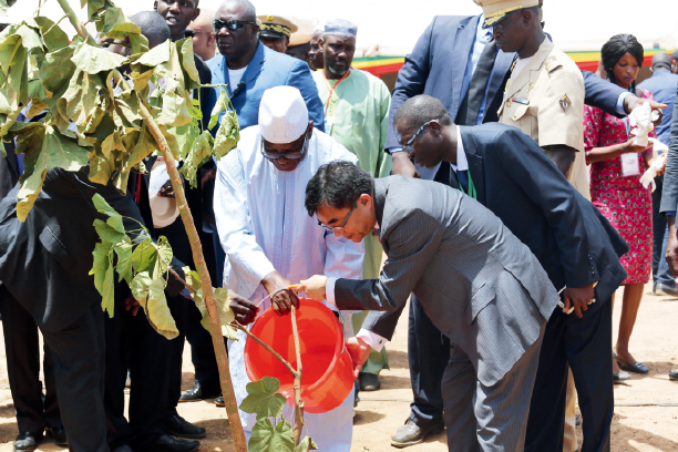 ⬆ 马里前总统易卜拉欣·凯塔(左一)参观工厂并植树