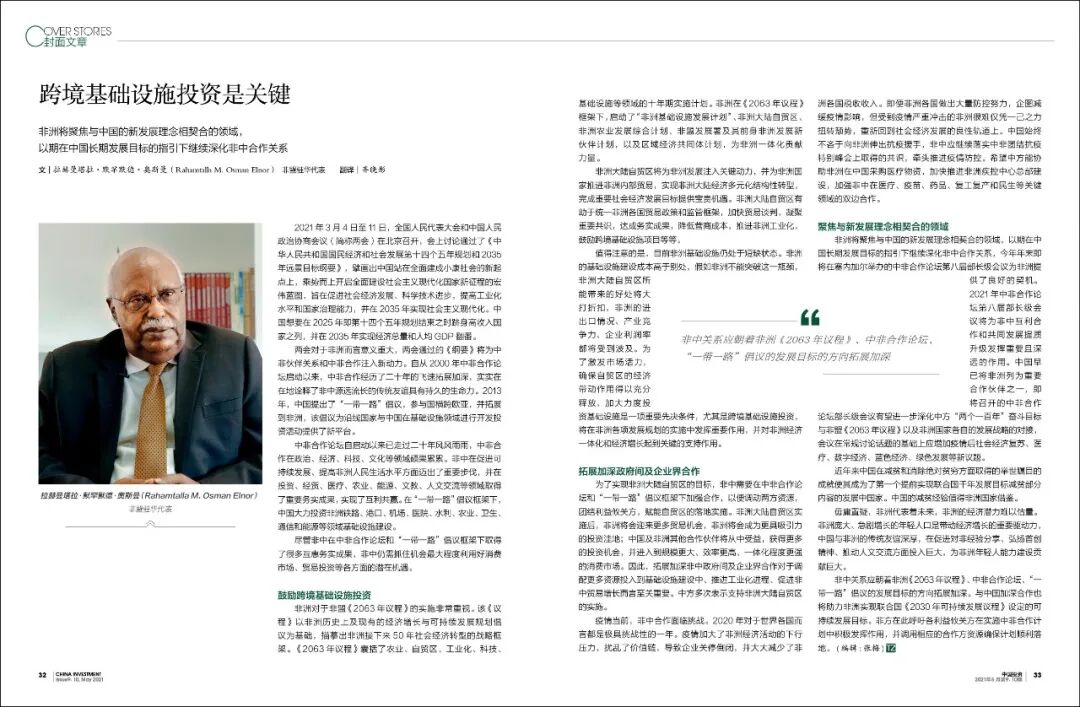 两会对于非洲而言意义重大,两会通过的《纲要》将为中非伙伴关系和中非合作注入新动力。自从2000年中非合作论坛启动以来,中非合作经历了二十年的飞速拓展加深,实实在在地诠释了非中源远流长的传统友谊具有持久的生命力。2013年,中国提出了“一带一路”倡议,参与国横跨欧亚,并拓展到非洲,该倡议为沿线国家与中国在基础设施领域进行开发投资活动提供了新平台。