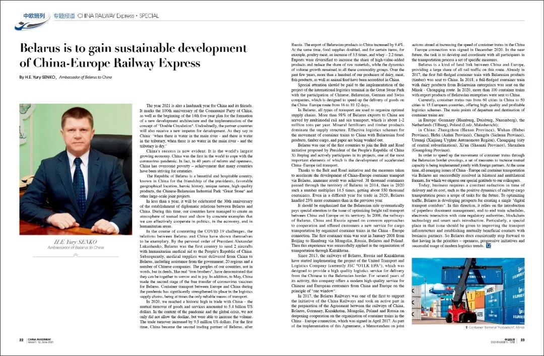 By H.E. Yury SENKO,Ambassador of Belarus to China