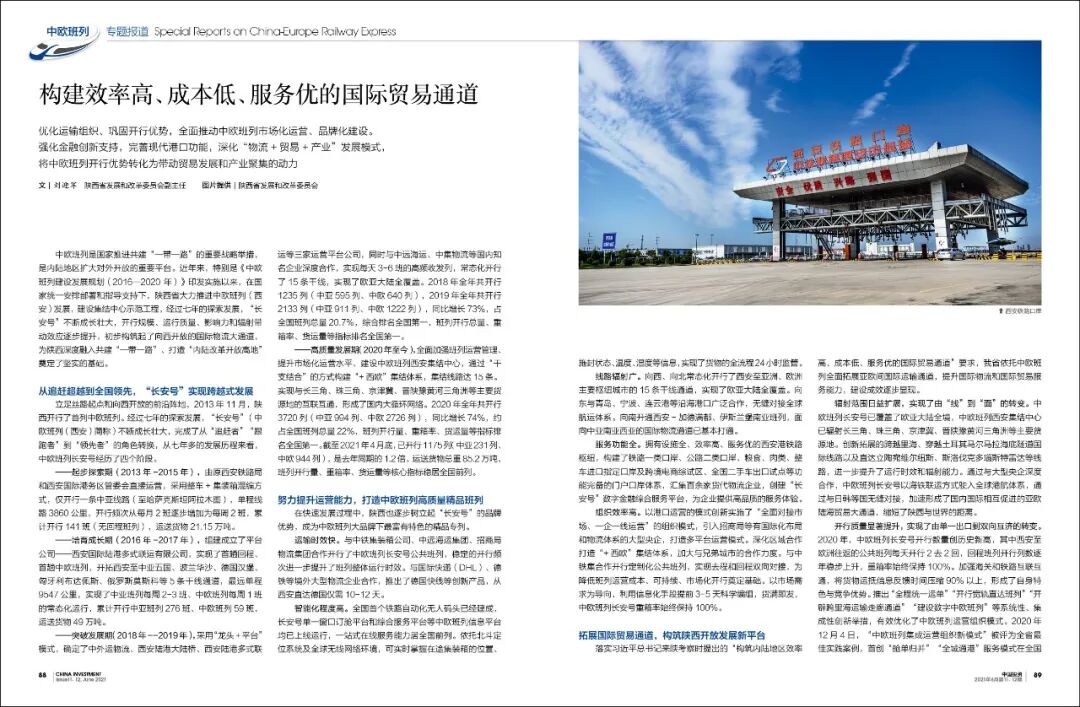 您做在的位置: 中国投资 > 封面故事 > 构建效率高、成本低、服务优的国际贸易通道