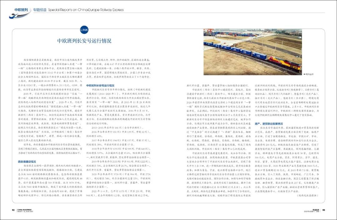 中欧班列(西安)集结中心建设情况。高起点、高标准建设中欧班列(西安)集结中心,项目建设方面,积极争取国家支持,西安已获批为中欧班列集结中心示范工程。2020年获得中央预算内投资支持的3个建设项目中“一带一路”国际多式联运智慧物流枢纽平台项目已完成基础功能开发,正在调试;中欧班列(西安)集结中心集拼货运通道拓宽改造及集卡分拨场站项目拟于6月底前完工;中欧班列长安号中转集拼场站项目主体建设完成。城市合作方面,与周边节点城市展开通力合作,借助各地优良的基础设施和产业资源,将各类货物聚集到西安上列运输,通过“干支结合”的方式构建了“+西欧”集结体系,相继开行了襄西欧、徐西欧、蚌西欧、冀西欧、厦西欧、唐西欧、永西欧、渭西欧、贵西欧、芜西欧、安西欧、榆西欧、常西欧、宛西欧、汉西欧等15条集结线路,形成了国内大循环网络,中欧班列(西安)集结中心已织线成网。