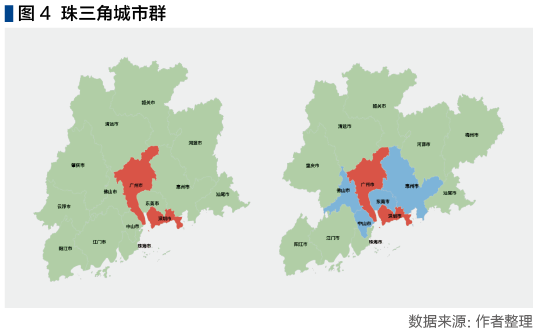 3、珠三角城市群:基本一致,“中心-外围”效应明显