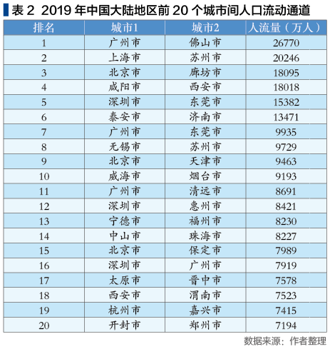 城市群涉及城市间人口、资金、技术、信息等要素的互联互通,需要用“流”数据对城市间的经济和人员往来进行分析,才能科学地做出评估。然而,中国的“流”数据相对比较缺乏。产业聚集最终会通过人的集聚体现出来,“人随产业走”,人流数据可以反映出城市群产业的聚集程度与联系紧密度,因此本报告以动态的“人流”数据为基础重新界定了城市群。