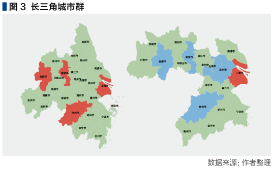 2、长三角城市群:多个次中心辐射,合肥小群凝聚力有限