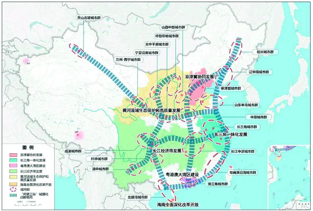 长江经济带和陇海兰新经济带都是东西方向,南北方向有沿海经济带和京广京哈经济带、包昆经济带。加上长江和陇海兰新经济带,通称为“两横三纵”,“十一五”规划就已明确为国家重点开发轴带。