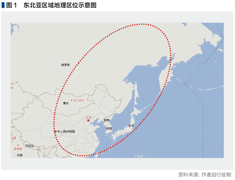 东北亚国际区域包括中国、日本、韩国、朝鲜、蒙古和俄罗斯远东地区,是世界上最重要的经济区域之一(见图1)。该区域不仅在地理上相邻,而且在历史上有着深厚的文化联系和复杂的地缘政治背景。随着全球经济一体化的加深,东北亚国际区域的经济合作显得尤为重要。特别是中日韩三国,其经济总量在全球占据重要地位,对全球经济增长具有重大影响。