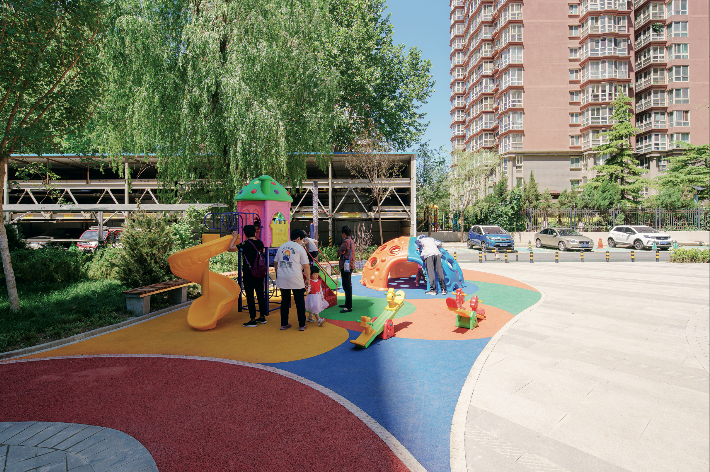 顺着这个思路,我找到了一个人人皱眉头的“价值洼地”。《北京规划管理条例》实施,赋予属地街道强烈的拆违职责和权力,首当其冲的是牡丹园北里的“小黄楼”。这是一栋1996年遗留的三层违建,20年来一直占据小区内部消防环路作为饭馆、群租房等低效利用。小黄楼拆除后,解决了隐患,却留下了一个高1米、700平方米占地的建筑基础。于是,在这个200户居民的小区最深处,这个渣土乱堆的土坡上,胡乱而不失有序的停满了居民的车子,地上有钢筋,下雨天有水坑,大家爬上土坡,取车走人。小区的环境比违建拆除前还要失序。