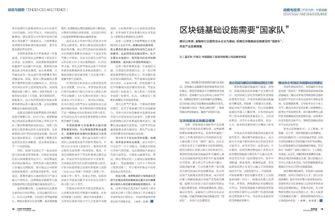 建议以电信、金融等行业国有龙头企业为基础,组建区块链基础设施建设的“国家队”,夯实产业发展根基