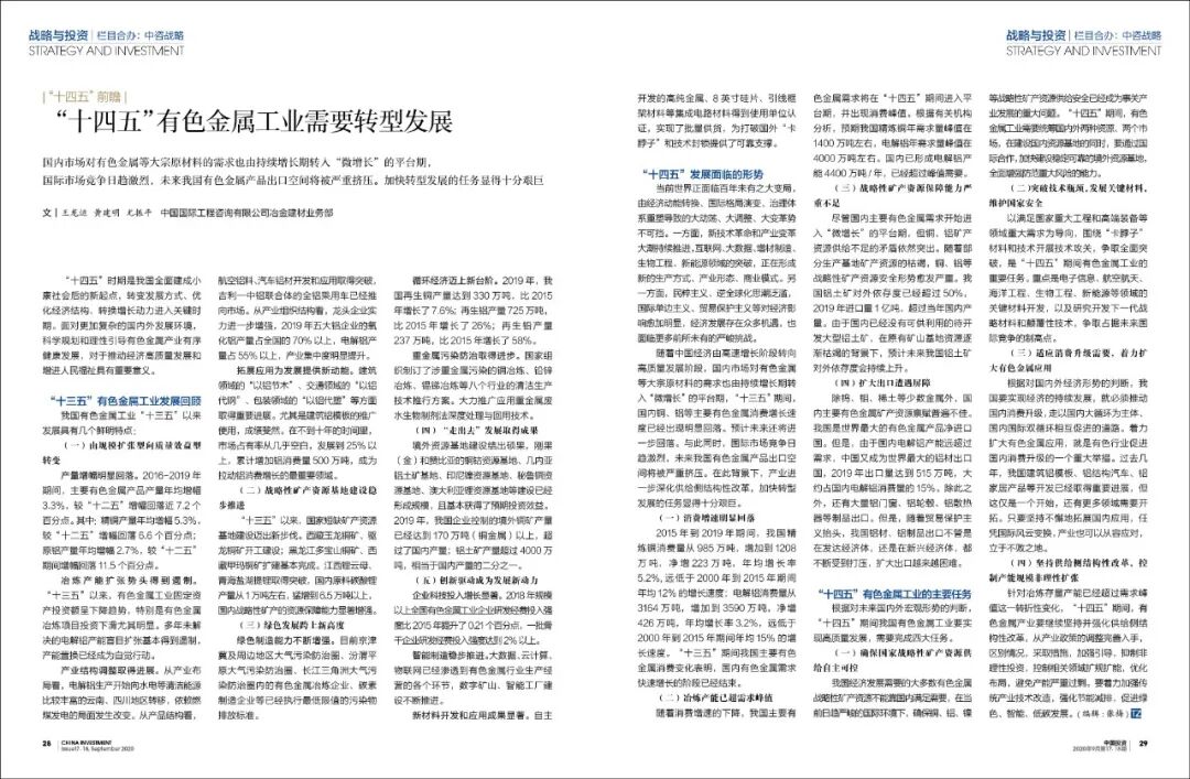 “十四五”时期是我国全面建成小康社会后的新起点,转变发展方式、优化经济结构、转换增长动力进入关键时期。面对更加复杂的国内外发展环境,科学规划和理性引导有色金属产业有序健康发展,对于推动经济高质量发展和增进人民福祉具有重要意义。