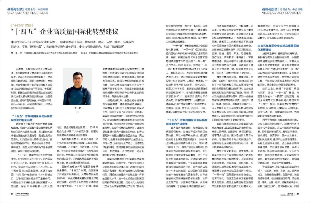 近年来,全球贸易保护主义有所抬头,部分国家加强了对本国企业和市场的保护,尤其在新冠肺炎疫情影响下,全球化进程有所放缓,短期不确定性进一步增加。但是中国对外开放的整体战略不会改变,企业的国际化趋势不可逆转。“十四五”时期,我国企业的国际化经营也应该由粗放式快速发展向高质量发展转变,注重经营效益,提高产品附加值,开拓国际市场,推动中国标准、中国品牌的输出,打造中国对外开放的旗舰标杆。