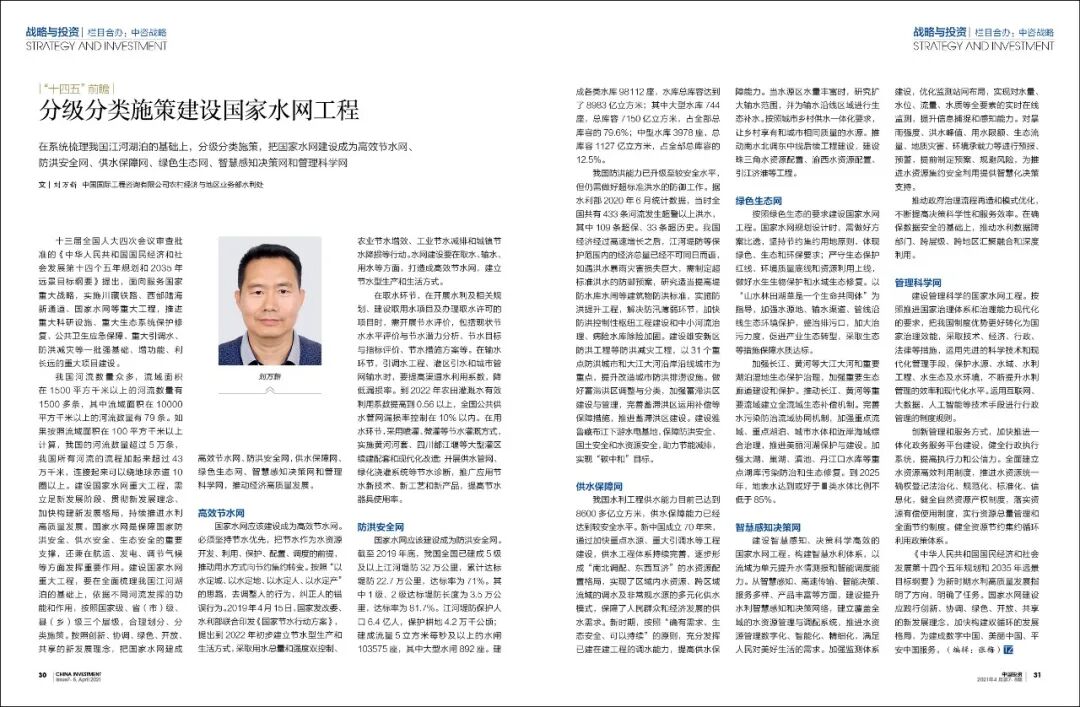 《中华人民共和国国民经济和社会发展第十四个五年规划和2035年远景目标纲要》为新时期水利高质量发展指明了方向,明确了任务。国家水网建设应践行创新、协调、绿色、开放、共享的新发展理念,加快构建双循环的发展格局,为建成数字中国、美丽中国、平安中国服务。