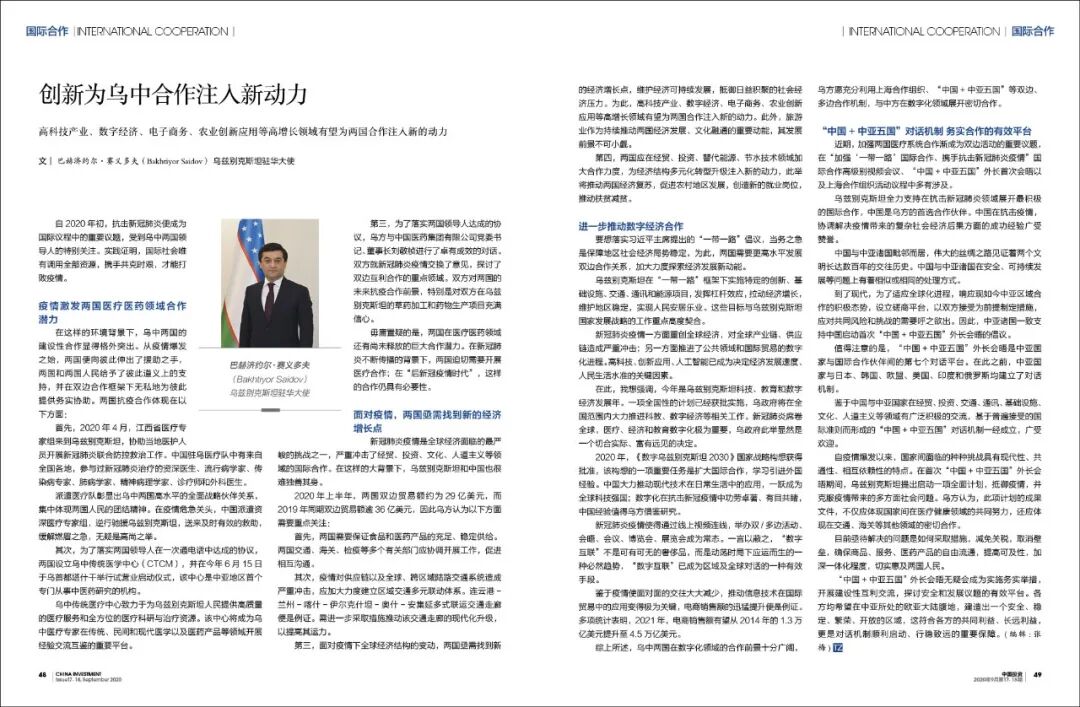 2020年,《数字乌兹别克斯坦2030》国家战略构想获得批准,该构想的一项重要任务是扩大国际合作,学习引进外国经验。中国大力推动现代技术在日常生活中的应用,一跃成为全球科技强国;数字化在抗击新冠疫情中功劳卓著、有目共睹,中国经验值得乌方借鉴研究。