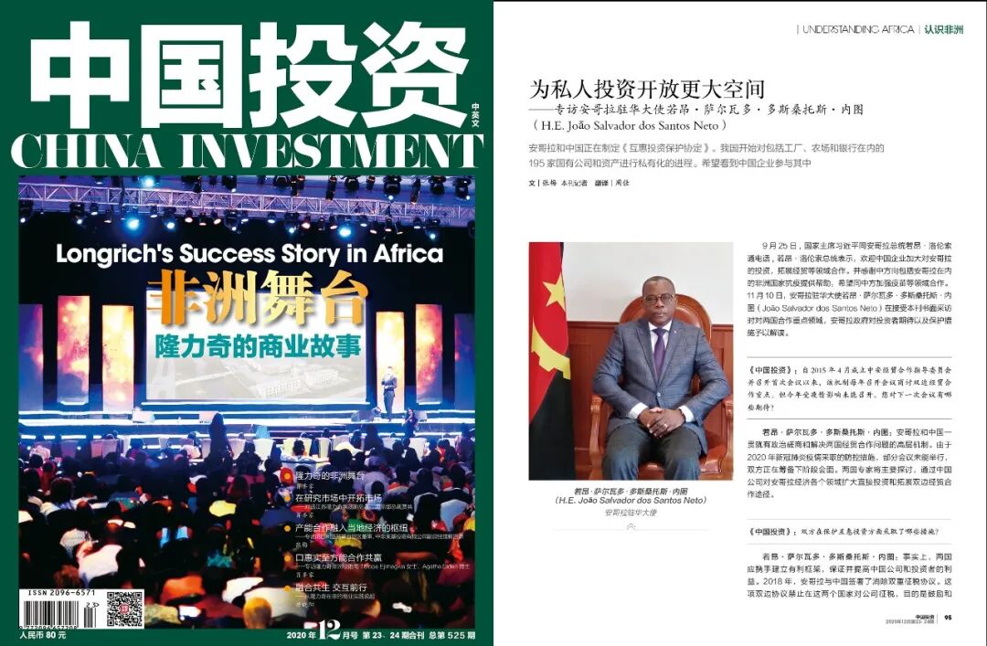 若昂·萨尔瓦多·多斯桑托斯·内图:安哥拉与中国建立了战略伙伴关系,两国保持着非常密切的政治、外交和经济联系,如正在进行的双边和多边事务协商。这些协商体现在两国各个级别,包括两国领导人级别上,通过双边会议、特使以及最近通过电话交谈。