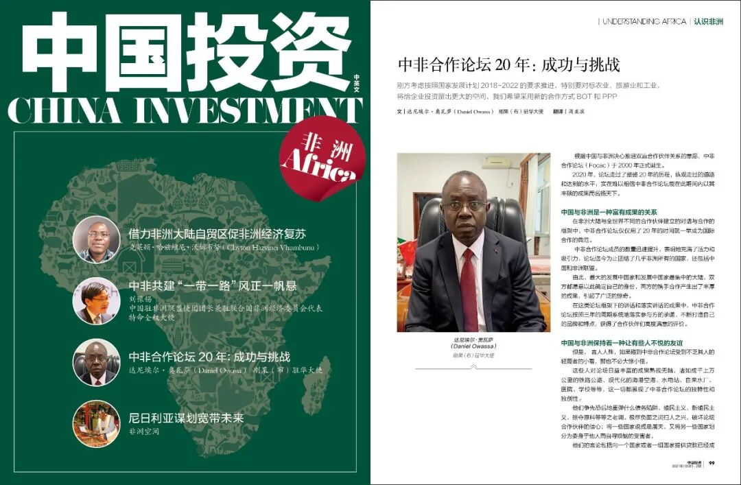 您做在的位置: 中国投资 > 宏观•政策 > 一带一路 > 中非合作论坛20年:成功与挑战