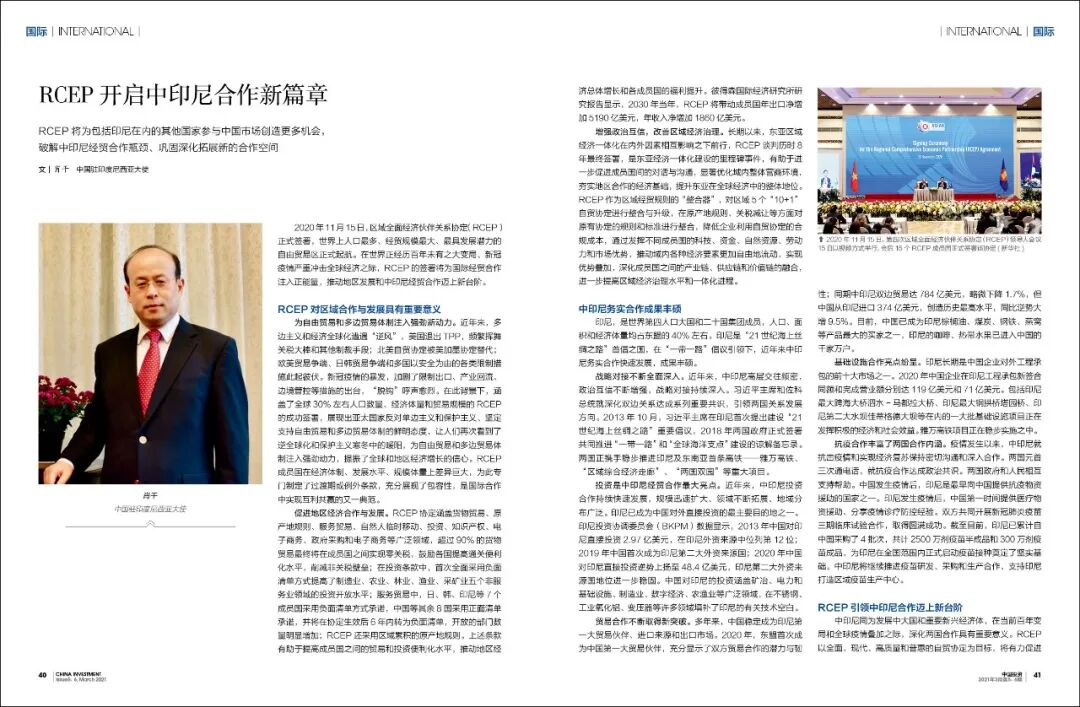 RCEP将为包括印尼在内的其他国家参与中国市场创造更多机会,破解中印尼经贸合作瓶颈、巩固深化拓展新的合作空间
