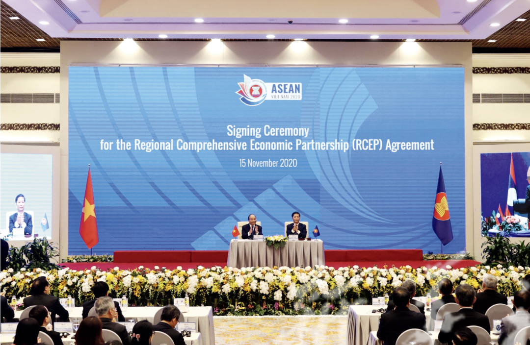 ⬆ 2020年11月15日,第四次区域全面经济伙伴关系协定(RCEP)领导人会议15日以视频方式举行,会后15个RCEP成员国正式签署该协定(新华社)