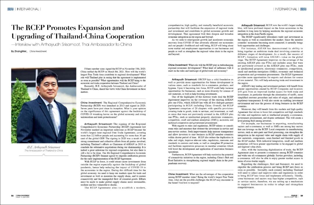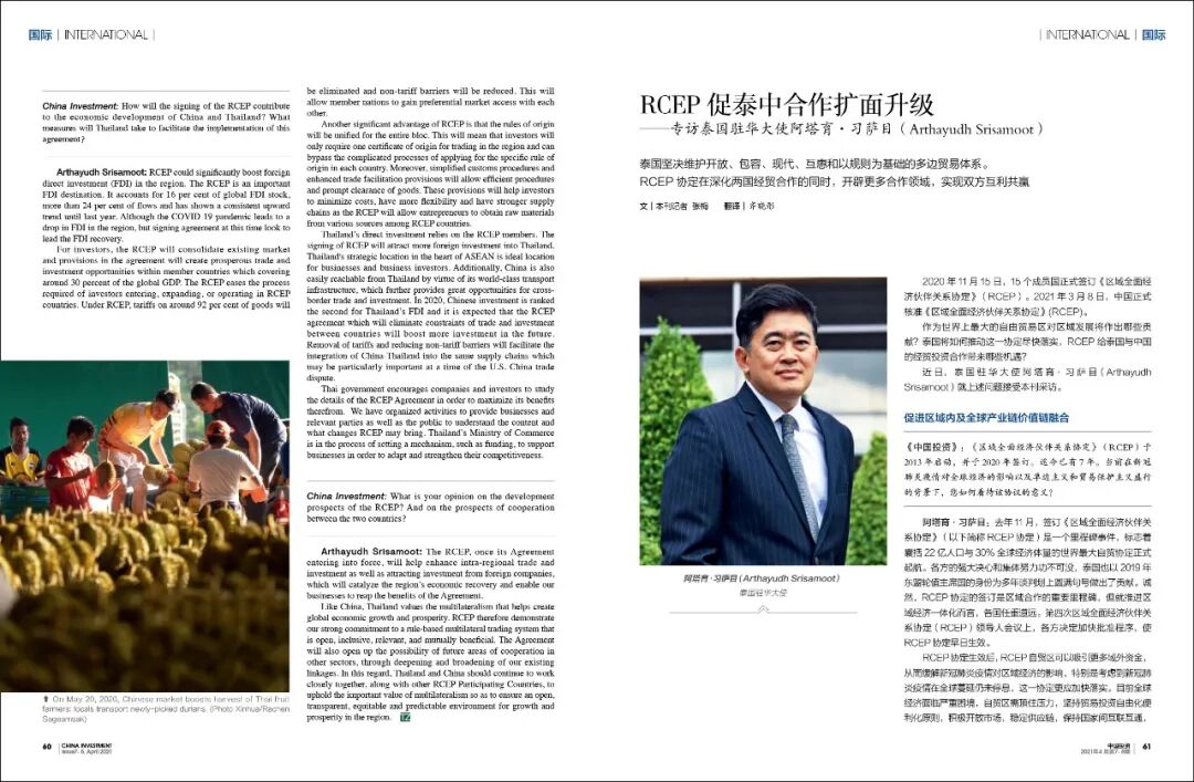《中国投资》:RCEP的签订将对中国和泰国的经济发展产生哪些积极影响?为了促进协议的执行,泰国采取了哪些政策措施?