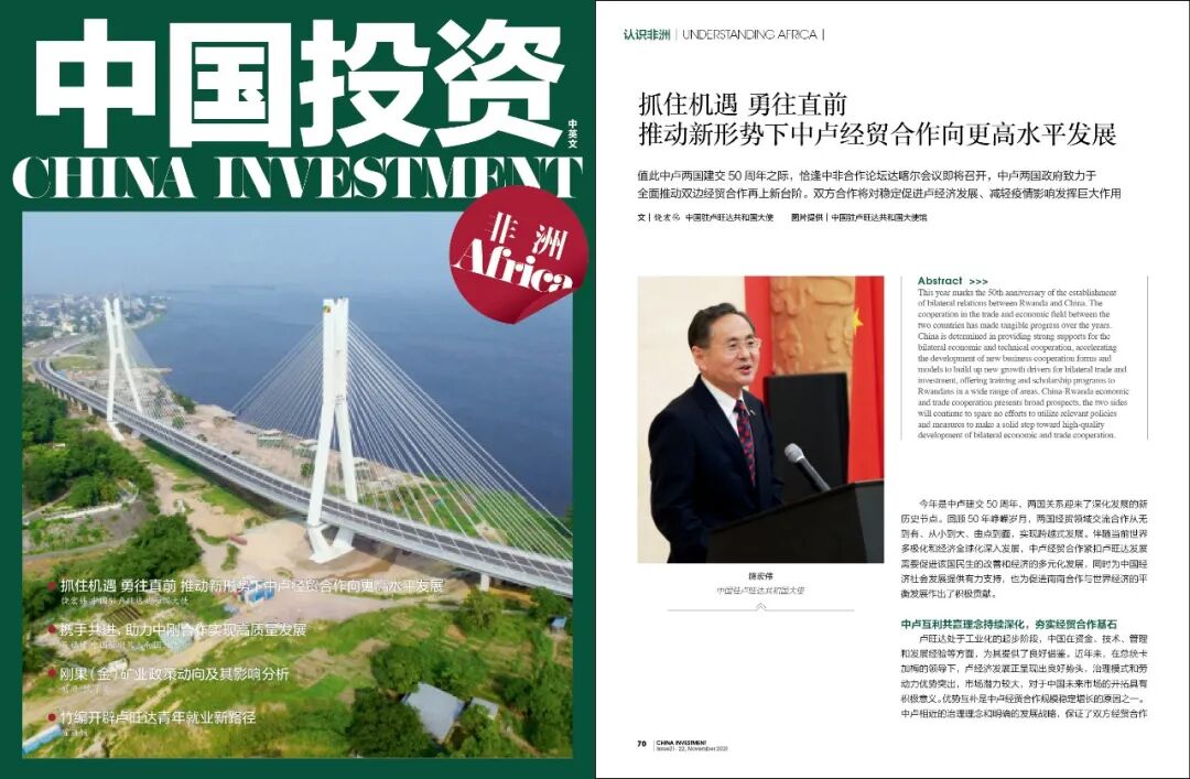 This year marks the 50th anniversary of the establishment of bilateral relations between Rwanda and China. The cooperation in the trade and economic field between the two countries has made tangible progress over the years. China is determined in providing strong supports for the bilateral economic and technical cooperation, accelerating the development of new business cooperation forms and models to build up new growth drivers for bilateral trade and investment, offering training and scholarship programs to Rwandans in a wide range of areas. China-Rwanda economic and trade cooperation presents broad prospects, the two sides will continue to spare no efforts to utilize relevant policies and measures to make a solid step toward high-quality development of bilateral economic and trade cooperation.