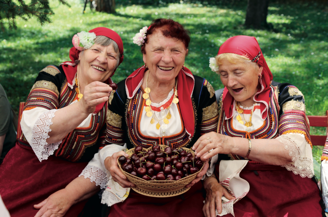 ⬆  2019年6月22日,在保加利亚丘斯滕迪尔的樱桃节上,果农向游人展示樱桃(新华社记者 战小漪摄)
