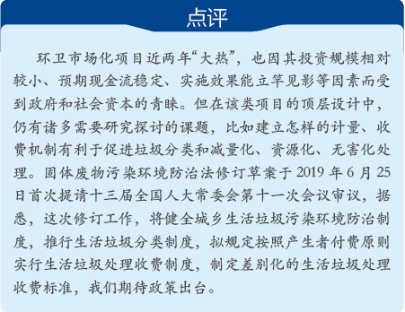 以大力发展绿色经济为背景,国家对环境卫生发展高度重视,政府管理理念不断深化,环卫市场化进程如沐春风、步入快速发展期,不同形式的商业模式活跃在环卫市场中,但政府购买服务和PPP模式仍是环卫产业的两大主流模式。政府购买服务与PPP模式对比,主要区别在于实施程序不同、预算安排与债务承担以及预算约束不同。政府采购服务模式由于程序简单、不受当地财政年度一般公共预算支出10%的约束,而广受青睐。但《关于坚决制止地方以政府购买服务名义违法违规融资的通知》(财预〔2017〕87号)出台后,明确规定“不得将原材料、燃料、设备、产品等货物,以及建筑物和构筑物的新建、改建、扩建及其相关的装修、拆除、修缮等建设工程作为政府购买服务项目”,因此类似岳西城乡环卫一化项目含有工程建设,不能再采用政府采购服务模式,建议采用PPP模式实施。