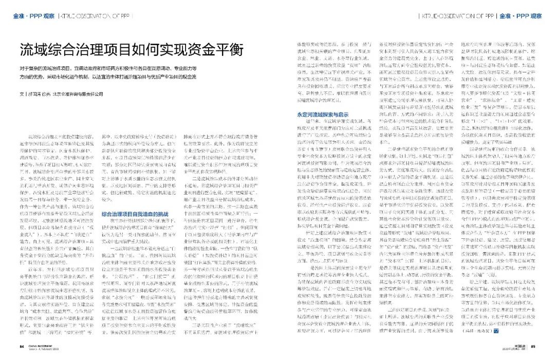 对于复杂的流域治理项目,宜调动政府和市场两方积极性和各自在资源调动、专业能力等方面的优势,采取市场化运作机制,以适宜的主体打通治理项目与优质产业项目的现金流