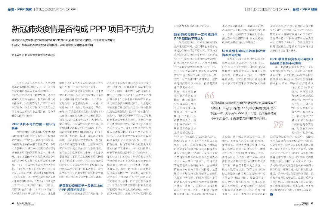 ●PPP项目社会资本方不可放任新冠肺炎疫情不利影响