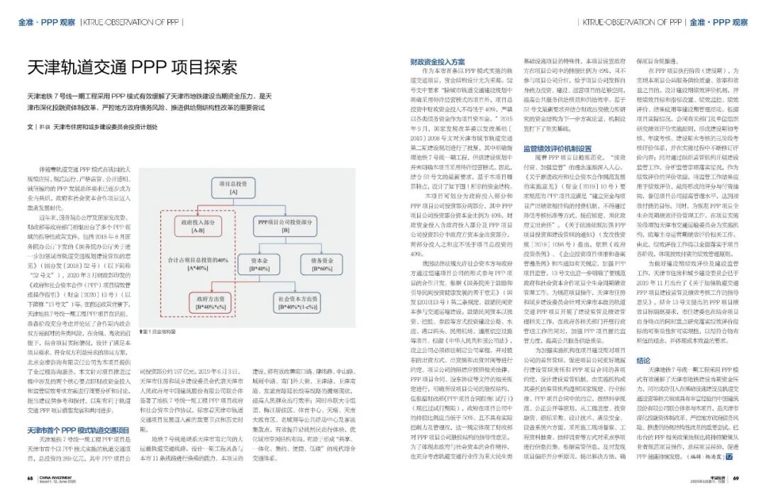 天津地铁7号线一期工程采用PPP模式有效缓解了天津市地铁建设当期资金压力,是天津市深化投融资体制改革、严控地方政府债务风险、推进供给侧结构性改革的重要尝试