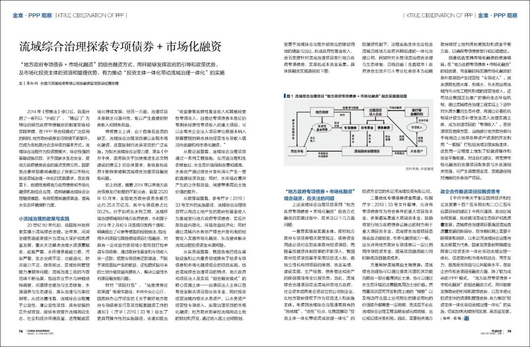 “地方政府专项债券+市场化融资”的组合融资方式,同样能够发挥政府的引导和政策优势,及市场化投资主体的资源和管理优势,有力推动“投资主体一体化带动流域治理一体化”的实施