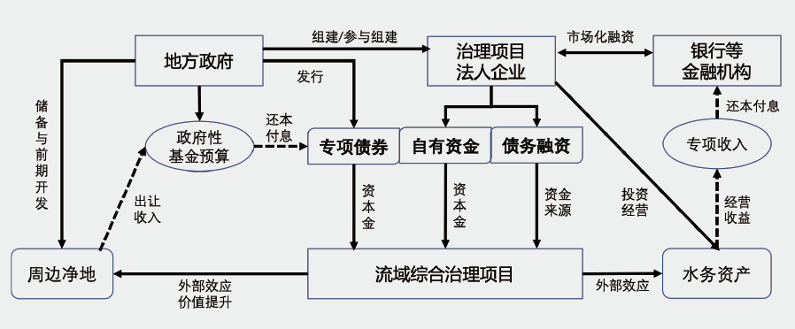 ⬆ 流域综合治理项目“地方政府专项债券+市场化融资”组合实施路径图(资料来源:作者整理)