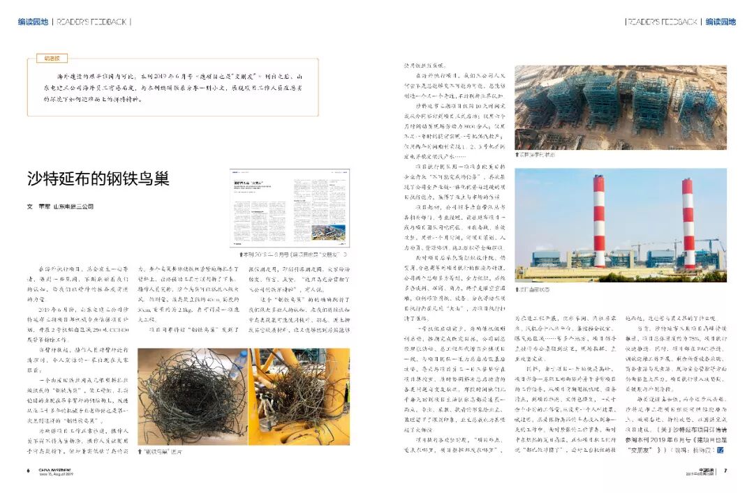 雄关漫道真如铁,而今迈步从头越。沙特延布三期项目组还将继续迎难而上、砥砺奋进、持续攻坚,以圆满完成项目建设。(关于沙特延布项目详情请参阅本刊2019年6月号《建项目也是“交朋友” 》)
