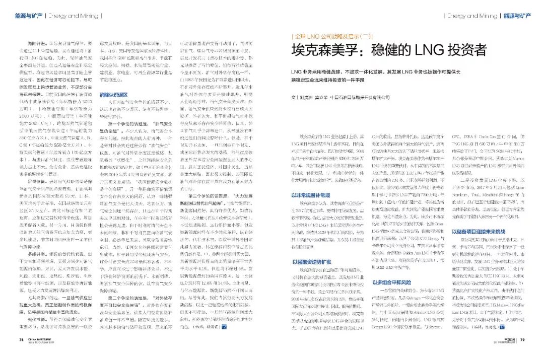 LNG业务采用稳健战略,不追求一体化发展。其发展LNG业务也被视作可提供长期稳定现金流来维持投资的一种手段