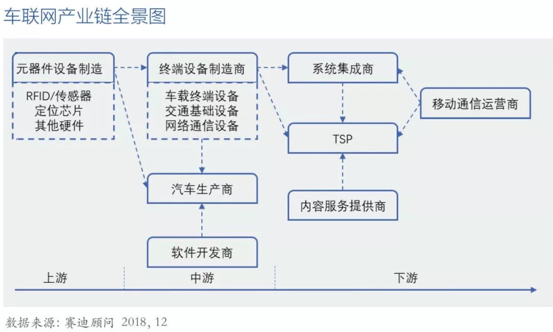 车、联、网三类龙头企业均在加强车联网产业布局,汽车和互联网企业主要关注较为成熟的车载信息服务领域,通信企业为下一步智能网联汽车发展建设基础。