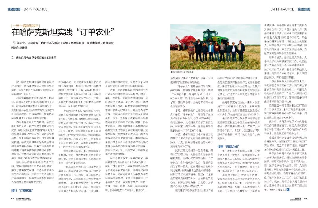 通过在哈萨克斯坦建设农业产业园,发展出独特的订单农业合作模式,解决了种植模式问题,带动当地150万亩的农产品种植,并将加工之后的最终产品销往中国,爱菊的哈萨克斯坦农业合作项目令双方实现了共赢。
