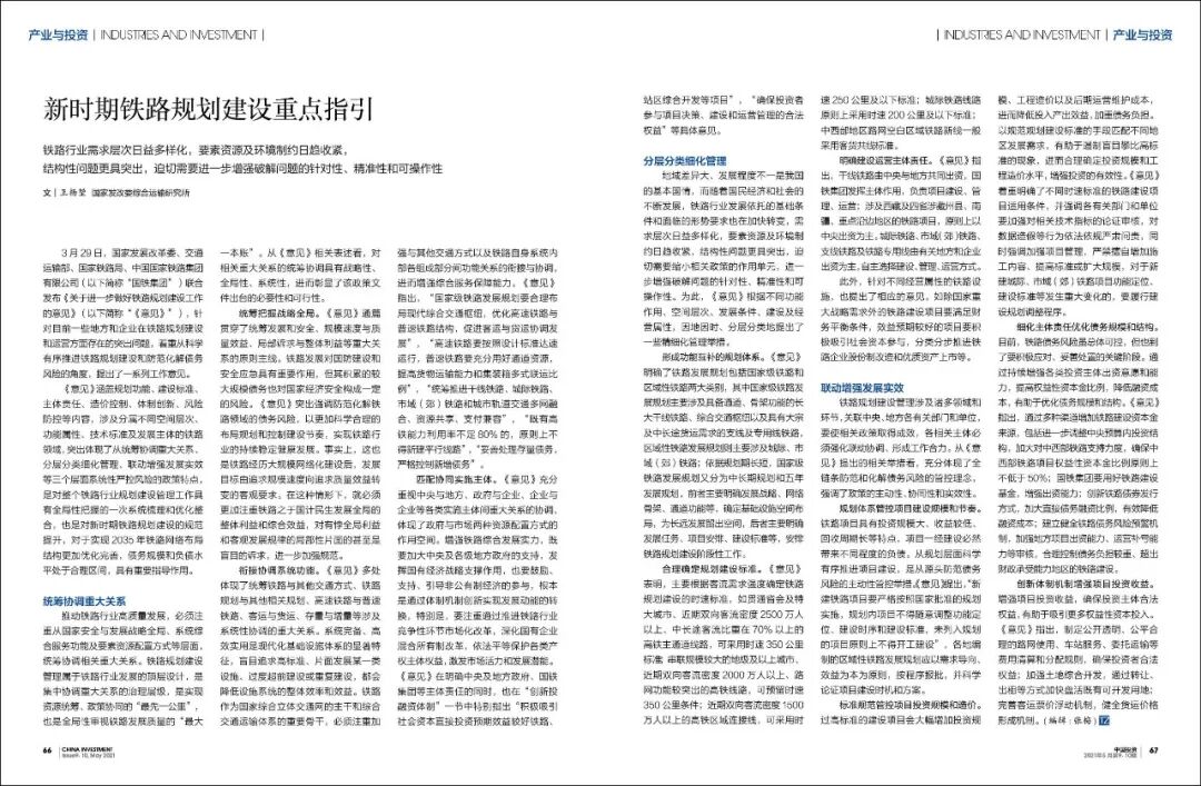 3月29日,国家发展改革委、交通运输部、国家铁路局、中国国家铁路集团有限公司(以下简称“国铁集团”)联合发布《关于进一步做好铁路规划建设工作的意见》(以下简称“《意见》”),针对目前一些地方和企业在铁路规划建设和运营方面存在的突出问题,着重从科学有序推进铁路规划建设和防范化解债务风险的角度,提出了一系列工作意见。 《意见》涵盖规划功能、建设标准、主体责任、造价控制、体制创新、风险防控等内容,涉及分属不同空间层次、功能属性、技术标准及发展主体的铁路领域,突出体现了从统筹协调重大关系、分层分类细化管理、联动增强发展实效等三个层面系统性严控风险的政策特点,是对整个铁路行业规划建设管理工作具有全局性把握的一次系统梳理和优化整合,也是对新时期铁路规划建设的规范提升,对于实现2035年铁路网络布局结构更加优化完善,债务规模和负债水平处于合理区间,具有重要指导作用。 统筹协调重大关系 推动铁路行业高质量发展,必须注重从国家安全与发展战略全局、系统综合服务功能及要素资源配置方式等层面,统筹协调相关重大关系。铁路规划建设管理属于铁路行业发展的顶层设计,是集中协调重大关系的治理层级,是实现资源统筹、政策协同的“最先一公里”,也是全局性审视铁路发展质量的“最大一本账”。从《意见》相关表述看,对相关重大关系的统筹协调具有战略性、全局性、系统性,进而彰显了该政策文件出台的必要性和可行性。 统筹把握战略全局。《意见》通篇贯穿了统筹发展和安全、规模速度与质量效益、局部诉求与整体利益等重大关系的原则主线。铁路发展对国防建设和安全应急具有重要作用,但其积累的较大规模债务也对国家经济安全构成一定的风险。《意见》突出强调防范化解铁路领域的债务风险,以更加科学合理的布局规划和控制建设节奏,实现铁路行业的持续稳定健康发展。事实上,这也是铁路经历大规模网络化建设后,发展目标由追求规模速度向追求质量效益转变的客观要求。在这种情形下,就必须更加注重铁路之于国计民生发展全局的整体利益和综合效益,对有悖全局利益和客观发展规律的局部性片面的甚至是盲目的诉求,进一步加强规范。 衔接协调系统功能。《意见》多处体现了统筹铁路与其他交通方式、铁路规划与其他相关规划、高速铁路与普速铁路、客运与货运、存量与增量等涉及系统性协调的重大关系。系统完备、高效实用是现代化基础设施体系的显著特征,盲目追求高标准、片面发展某一类设施、过度超前建设或重复建设,都会降低设施系统的整体效率和效益。铁路作为国家综合立体交通网的主干和综合交通运输体系的重要骨干,必须注重加强与其他交通方式以及铁路自身系统内部各组成部分间功能关系的衔接与协调,进而增强综合服务保障能力。《意见》指出,“国家级铁路发展规划要合理布局现代综合交通枢纽,优化高速铁路与普速铁路结构,促进客运与货运协调发展”,“高速铁路要按照设计标准达速运行,普速铁路要充分用好通道资源,提高货物运输能力和集装箱多式联运比例”,“统筹推进干线铁路、城际铁路、市域(郊)铁路和城市轨道交通多网融合、资源共享、支付兼容”,“既有高铁能力利用率不足80%的,原则上不得新建平行线路”,“妥善处理存量债务,严格控制新增债务”。 匹配协同实施主体。《意见》充分重视中央与地方、政府与企业、企业与企业等各类实施主体间重大关系的协调,体现了政府与市场两种资源配置方式的作用空间。增强铁路综合发展实力,既要加大中央及各级地方政府的支持,发挥国有经济战略支撑作用,也要鼓励、支持、引导非公有制经济的参与,根本是通过体制机制创新实现发展动能的转换,特别是,要注重通过推进铁路行业竞争性环节市场化改革,深化国有企业混合所有制改革,依法平等保护各类产权主体权益,激发市场活力和发展潜能。《意见》在明确中央及地方政府、国铁集团等主体责任的同时,也在“创新投融资体制”一节中特别指出“积极吸引社会资本直接投资预期效益较好铁路、站区综合开发等项目”,“确保投资者参与项目决策、建设和运营管理的合法权益”等具体意见。 分层分类细化管理 地域差异大、发展程度不一是我国的基本国情,而随着国民经济和社会的不断发展,铁路行业发展依托的基础条件和面临的形势要求也在加快转变,需求层次日益多样化,要素资源及环境制约日趋收紧,结构性问题更具突出,迫切需要缩小相关政策的作用单元,进一步增强破解问题的针对性、精准性和可操作性。为此,《意见》根据不同功能作用、空间层次、发展条件、建设及经营属性,因地因时、分层分类地提出了一些精细化管理举措。 形成功能互补的规划体系。《意见》明确了铁路发展规划包括国家级铁路和区域性铁路两大类别,其中国家级铁路发展规划主要涉及具备通道、骨架功能的长大干线铁路、综合交通枢纽以及具有大宗及中长途货运需求的支线及专用线铁路,区域性铁路发展规划则主要涉及城际、市域(郊)铁路;依据规划期长短,国家级铁路发展规划又分为中长期规划和五年发展规划,前者主要明确发展战略、网络骨架、通道功能等,确定基础设施空间布局,为长远发展留出空间,后者主要明确