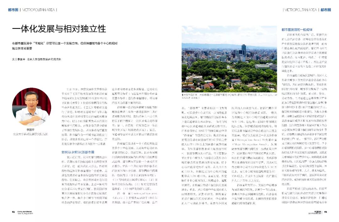 在都市圈发展中“同城化”尽管可以是一个发展方向,但保持圈域内各个中心的相对独立性非常重要