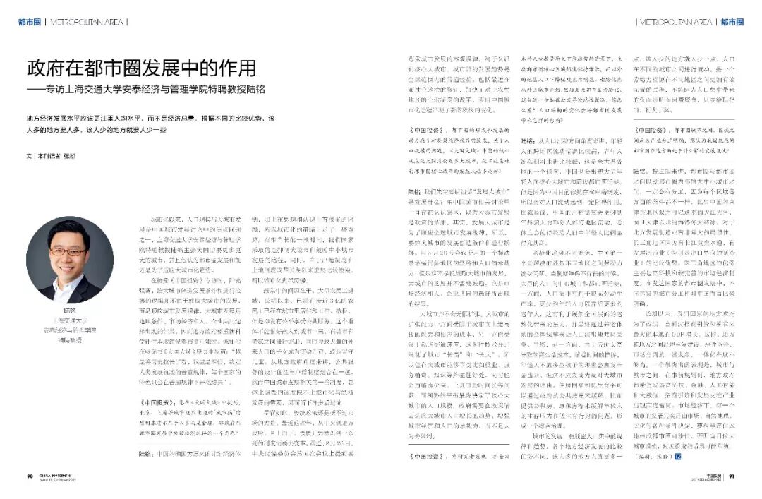 政府在都市圈发展中的作用 ——专访上海交通大学安泰经济与管理学院特聘教授陆铭