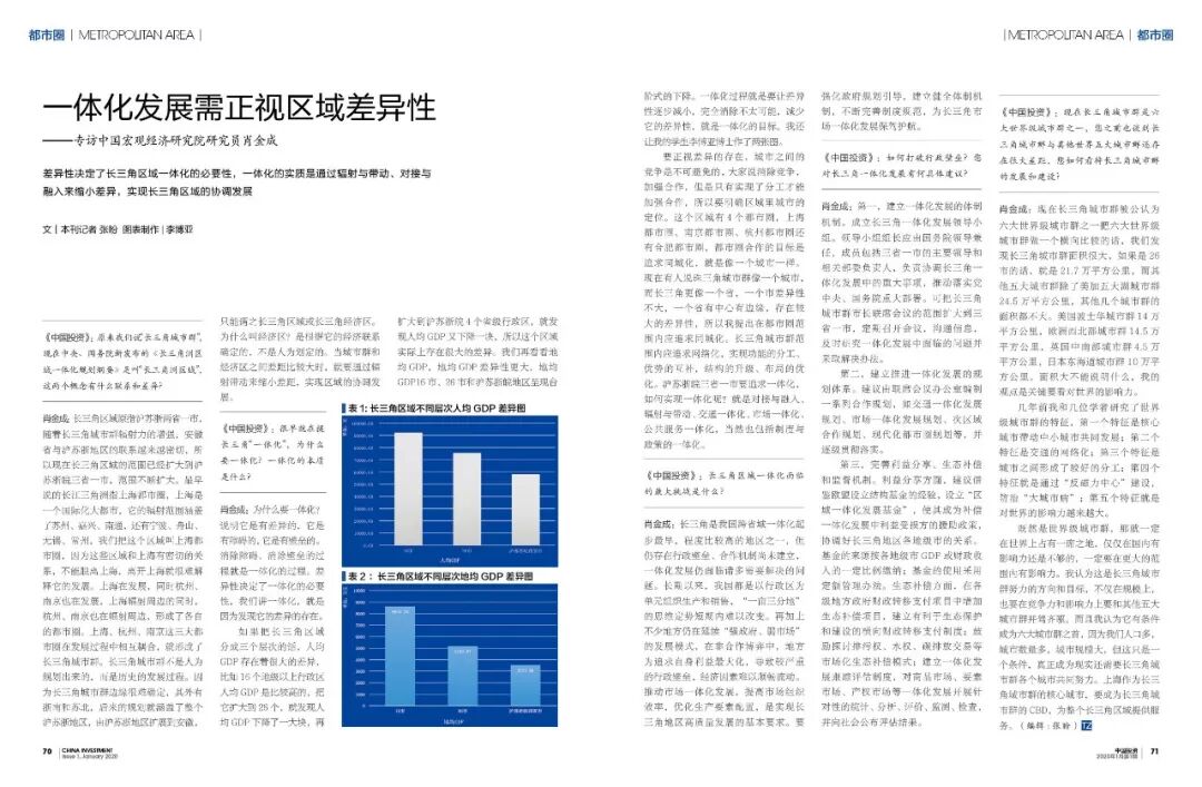 《中国投资》:很早就在提长三角“一体化”,为什么要一体化?一体化的本质是什么?