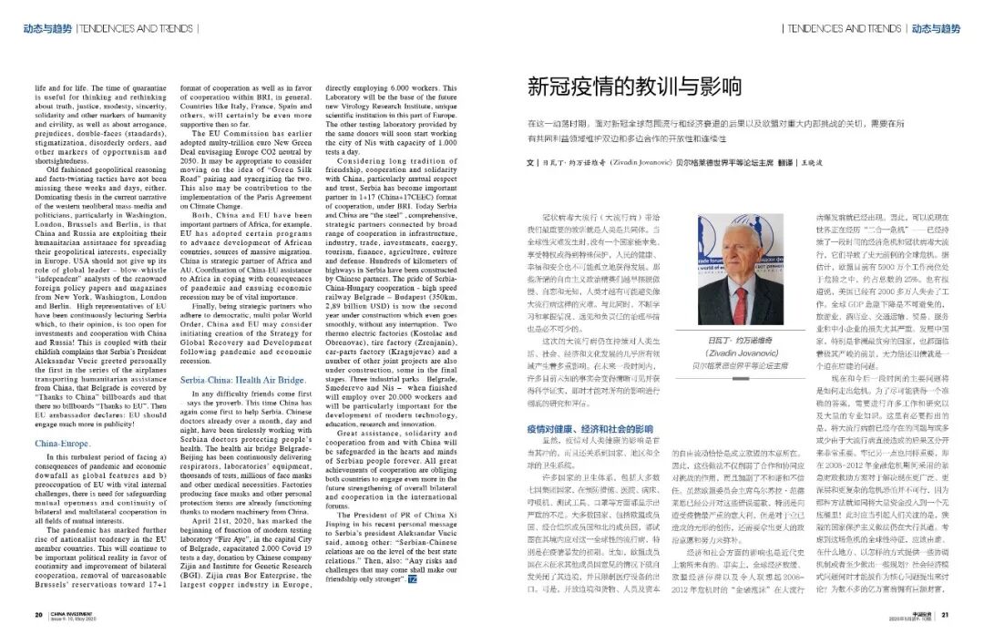 最后,作为坚持民主、多极世界秩序的战略伙伴,中国和欧盟可以考虑在全球大流行病和经济衰退之后共同制定全球复苏和发展的战略。