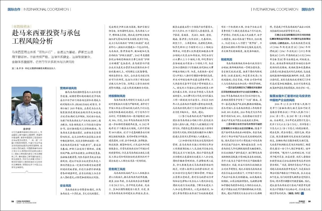 (1)鉴于马来西亚政府严格限制中国派驻马来西亚公司的工作人员及技术劳务人员的人数,中国工人较难获得工作许可证,中国承包商应特别注意工程项目劳务用工风险,特别是投标报价和工期不能建立在使用大量中国工人的基础上。