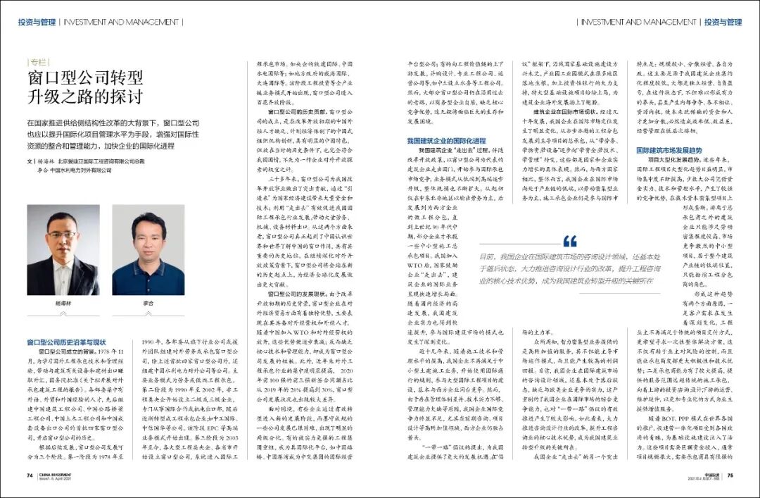 窗口型企业是我国改革开放政策的特殊产物,由行业协会提出的窗口型公司的业务模式创新被政府批准采用后,后被各工程公司主动采用。在几十年的发展中,通过“引进来”和“走出去”,为国家发展作出了巨大贡献。在新的历史时期,窗口型公司急需转型升级,以适应国际市场的新要求。在国家推进供给侧结构性改革的大背景下,窗口型公司也应以提升国际化项目管理水平为手段,增强对国际性资源的整合和管理能力,加快企业的国际化进程,为企业良性可持续发展打下坚实基础。